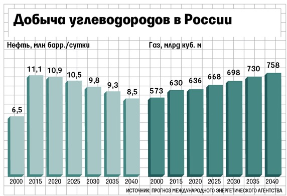 Добыча нефти в России упадет к 2040 г. ниже 8,5 млн барр. в сутки, прогнозирует Международное энергетическое агентство (МЭА).