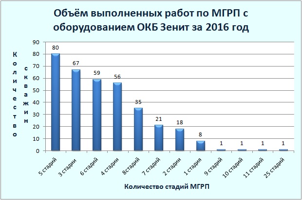 Объём выполненных работ по МГРП с оборудованием ОКБ Зенит за 2016 год – 348 скважин.