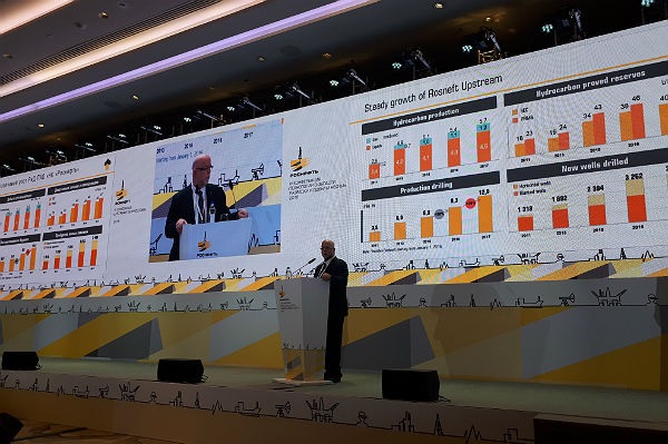 На конференции выступил Первый вице-президент Эрик Лирон, который в своём докладе сказал, что Роснефть» является крупнейшей публичной нефтяной компанией не только за счет новых приобретений, но благодаря внедрению передовых технологий на молодых и зрелых месторождениях. За последние три года «Роснефть» направила на финансирование инновационной деятельности 210 млрд. рублей